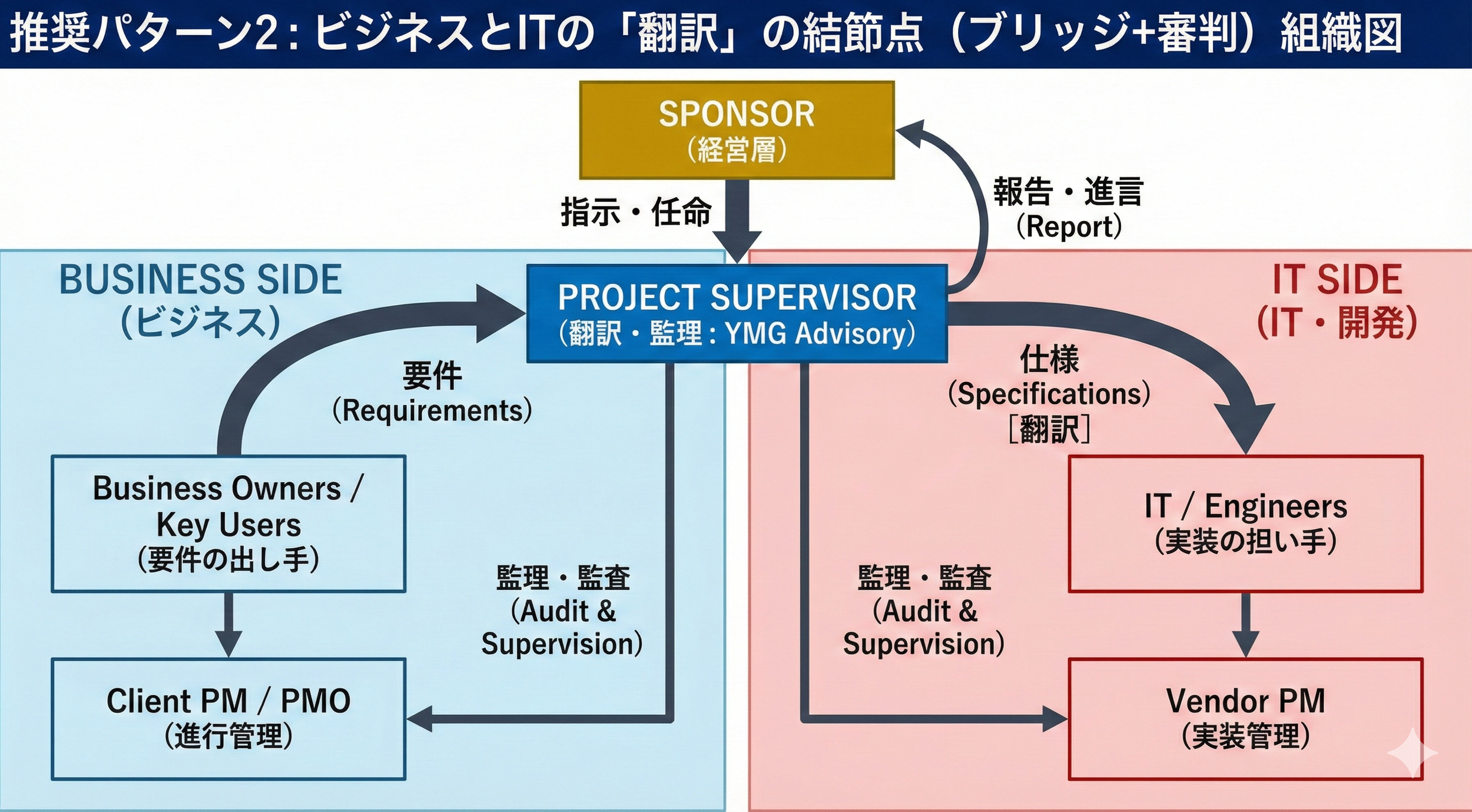 推奨パターン2:ビジネスとITの「翻訳」の結節点(ブリッジ+審判)