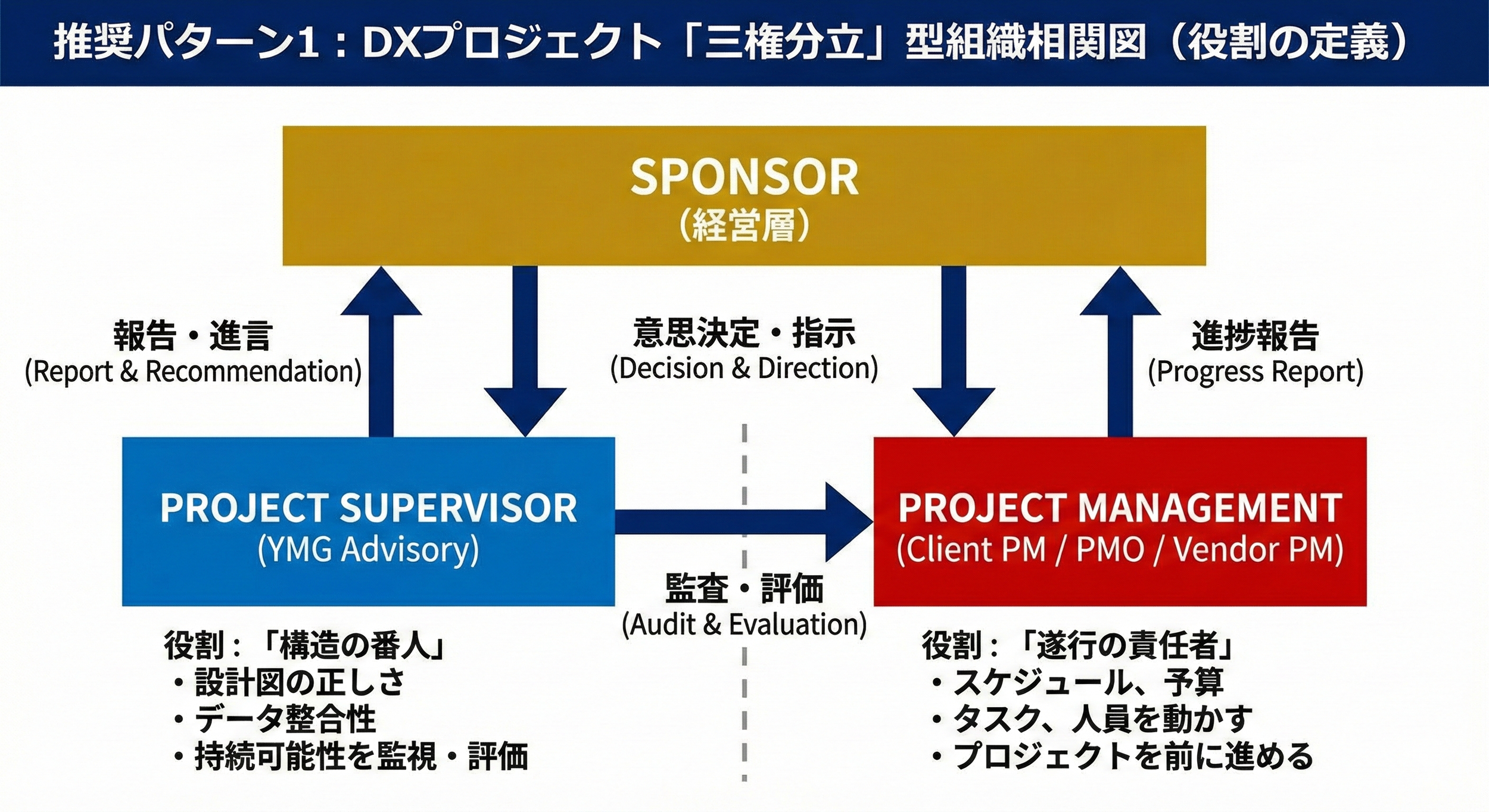 推奨パターン1:スポンサー直下のアドバイザリー(独立した品質監査席)